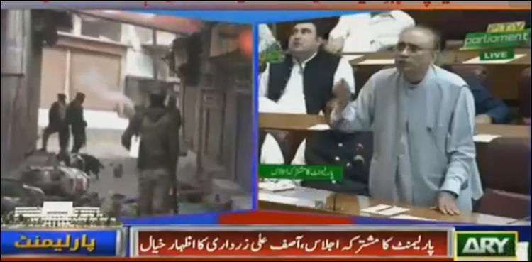 آصف زرداری کا کہنا تھا کہ کشمیریوں کوخراج تحسین پیش کرتاہوں،برطانوی پارلیمنٹ میں قرارداد لائے، کشمیری شہداکی پاکستان کےجھنڈےمیں تدفین ہوتی ہے، سلام پیش کرتاہوں کشمیریوں کوجنہوں نےاپنی تحریک کوتقویت دی۔