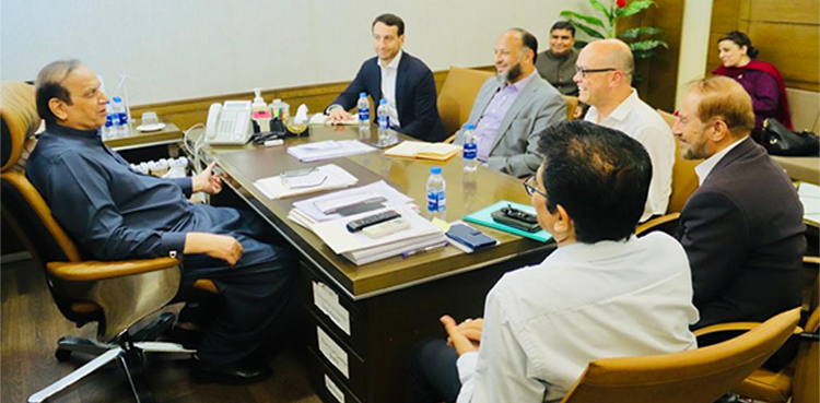 تفصیلات کے مطابق صوبائی وزیر توانائی امتیاز احمد شیخ نے سیکریٹری انرجی ، کے الیکٹرک کے چیئرمین مارک اسکیلٹن ، سی ای او سید مونس عبداللہ علوی، فر ح ناز اور نکولس شیورز ملر سے ملاقات کی۔
