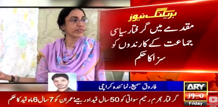 عدالت نے مقدمے میں گرفتار سیاسی جماعت کے 3 کارندوں کے اعتراف اور جرم ثابت ہونے پر انہیں 57 سال 6 ماہ قید کا حکم دیا، جن میں احمدخان عرف، امجدحسین اور ایازسواتی شامل ہیں۔