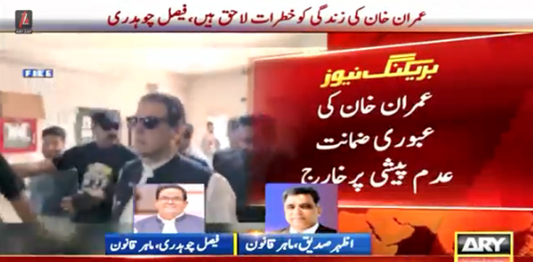 انسداددہشت گردی عدالت کے جج راجہ جوادعباس نے فیصلہ سنا دیا ، عمران خان کی عبوری ضمانت خارج کردی ، عبوری ضمانت عدم پیشی پر خارج کی گئی۔