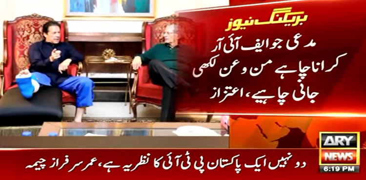 اعزاز احسن نے لاہور میں عمران خان سے ملاقات کے بعد میڈیا سے گفتگو میں سابق وزیر اعظم پر حملے کی ایف آئی آر پر سوال اٹھا دیے۔