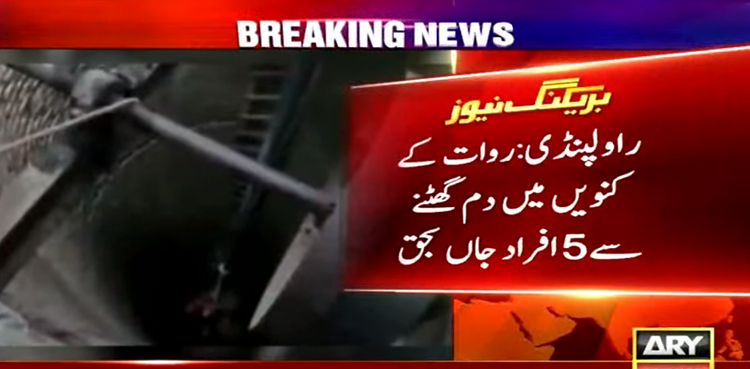 راولپنڈی کے علاقہ روات میں کنویں میں دم گھٹنے سے 5 افراد جاں جاں بحق ہوگئے۔