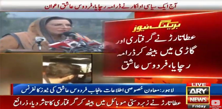 وزیراعلیٰ پنجاب کی معاون خصوصی برائے اطلاعات فردوس عاشق اعوان نے لیگی رہنما عطااللہ تارڈ کی گرفتاری کو ڈرامہ قرار دیتے ہوئے کہا ہے کہ لیگی رہنما نے خود پولیس موبائل میں بیٹھ کر گرفتاری کا ڈرامہ رچایا۔