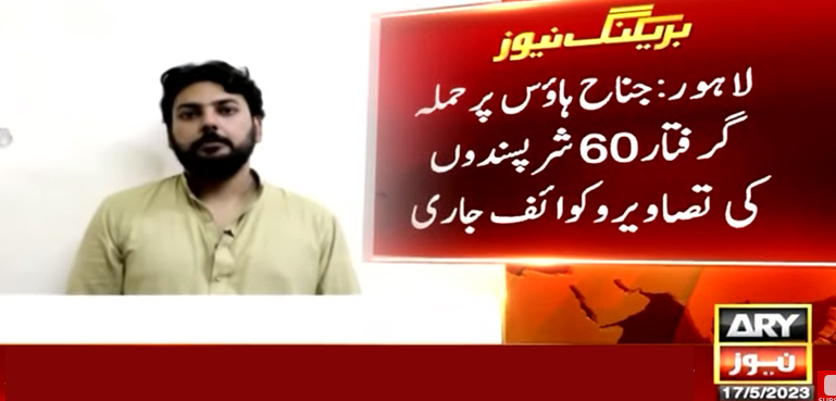اے آر وائی نیوز کے مطابق گزشتہ دنوں جناح ہاؤس لاہور پر حملے کے الزام میں گرفتار 60 شرپسندوں کی تصاویر اور کوائف جاری کر دیے گئے ہیں۔ مذکورہ شرپسندوں کا تعلق لاہور، اوکاڑہ، گوجرانوالہ، خوشاب اور ڈیرہ غازی خان سے ہے۔