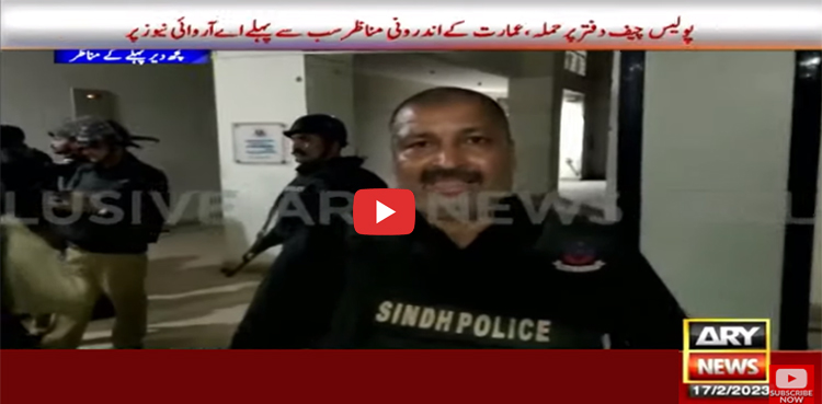 کراچی پولیس چیف کے دفتر پر ہونے والے حملے کے بعد عمارت کے اندرونی مناظر سامنے آگئے۔