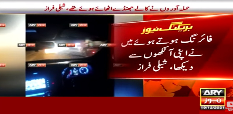 وفاقی وزیر سائنس و ٹیکنالوجی شبلی فراز نے کہا ہے کہ حملہ آور وں نے کالے جھنڈے اٹھائے ہوئے تھے فائرنگ ہوئی ، پتہ نہیں کیسے بچ گئے میرا ڈائیور زخمی ہے۔