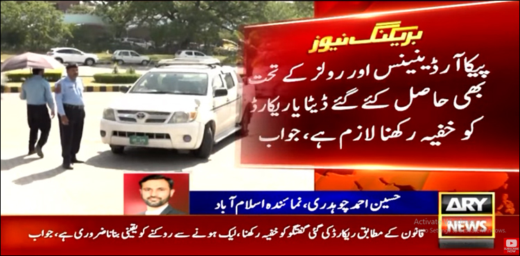 انھوں نے کہا اس بات کو یقینی بنانا ضروری ہے کہ ریکارڈ کی گئی گفتگو کو کسی اور مقصد کے لیے استعمال نہ کیا جا سکے، ٹیلی گراف ایکٹ میں بھی پیغامات پڑھنے کے لیے وفاقی یا صوبائی حکومت سے اجازت کو لازم قرار دیا گیا، لیکن پیکا آرڈینینس اور رولز کے تحت بھی حاصل کیے گئے ڈیٹا یا ریکارڈ کو خفیہ رکھنا لازم ہے۔