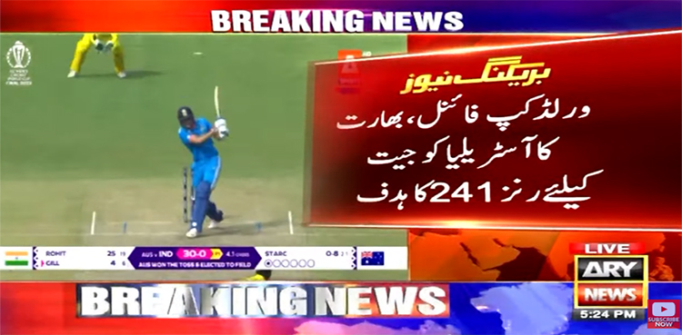 ورلڈکپ فائنل میں بھارت نے آسٹریلیا کو جیت کے لیے 241 رنز کا ہدف دے دیا۔