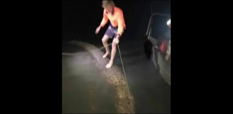 آسٹریلوی شہری خطرناک مگرمچھ پر ایسے سواری کررہا ہے جیسے اسکیٹ بورڈ پر سوار ہو، مگر مچھ پر سواری کی تصویر سوشل میڈیا پر وائرل ہوگئی۔