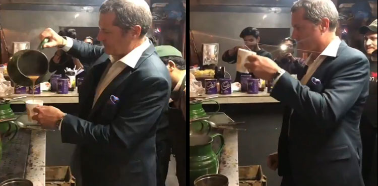Adding Australian touch to Karachi’s very own doodh paati (Tea) ☕#SimonTaufel #Karachi 🇵🇰 pic.twitter.com/AexezlFGau