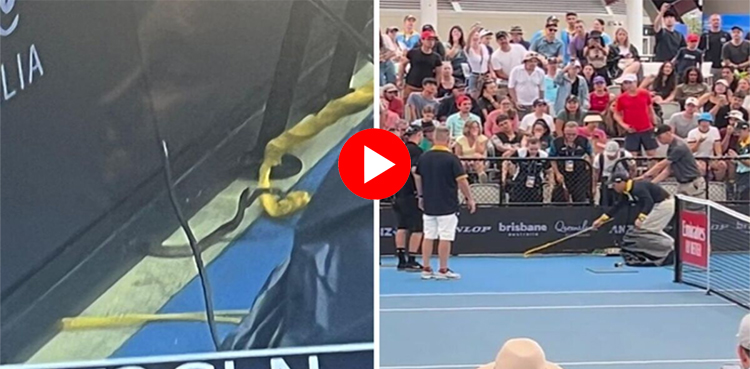 برسبین انٹرنیشنل ٹینس ٹورنامنٹ کے دوران دنیا کا دوسرا سب سے زہریلا سانپ جو 30 منٹ کے اندر اندر جان لیوا زہر دینے کی صلاحیت رکھتا ہے اچانک میچ کے دوران نکل آیا۔