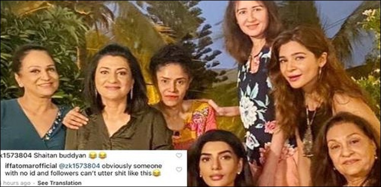 اداکارہ عفت عمر نے چند روز قبل انسٹاگرام پر ایک تصویر شیئر کی جس میں بشریٰ انصاری، عائشہ عمر، صبا حمید، ثمینہ احمد، ارجمند رحیم اور اینجلینا ملک موجود تھیں۔