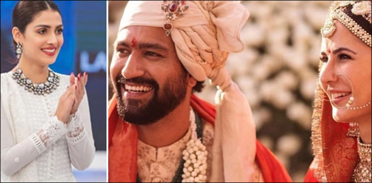 عائزہ خان نے کترینہ کیف اور وکی کوشل کی تصویر شیئر کرتے ہوئے ’فائنلی‘ لکھا۔