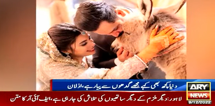 دولہا نے اپنی شادی میں گدھے کے ساتھ انٹری دی جسے دیکھ کر مہمان حیران رہ گئے۔ اذلان نے دلہن کو گدھے کا بچہ بطور تحفہ دیا جس کے سوشل میڈیا پر خوب چرچے ہو رہے ہیں۔