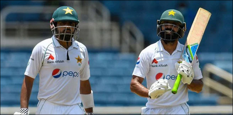 جمیکا: ویسٹ انڈیز کے خلاف دوسرے ٹیسٹ میچ میں قومی ٹیم گر کر سنبھل گئی، ابتدائی تین وکٹیں 2 رنز پر گرنے کے بعد بابر اعظم اور فواد عالم نے نصف سنچریاں اسکور کردیں۔