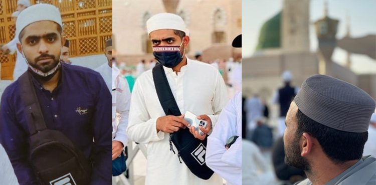 مسجد نبوی ﷺ میں مداحوں نے اپنے اسٹارز کے تصاویر بنائیں جو سوشل میڈیا پر وائرل ہو گئیں، تصاویر میں بابر اور فخر مسجد نبویﷺ کے صحن میں خوشگوار موڈ میں دکھائی دے رہے ہیں۔