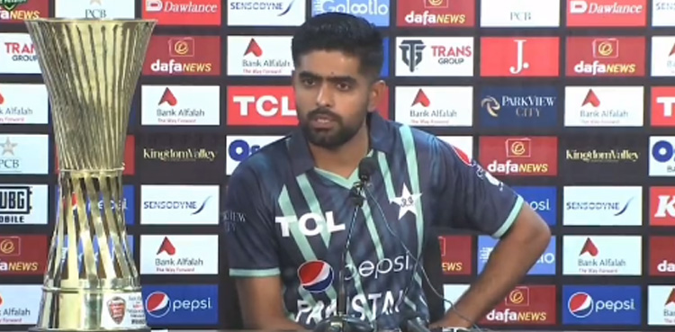پاکستان اور انگلینڈ کے درمیان کل سے شروع ہونے والی ٹی 20 سیریز کی ٹرافی کی رونمائی کردی گئی جس کے بعد بابر اعظم نے میڈیا سے گفتگو کی۔