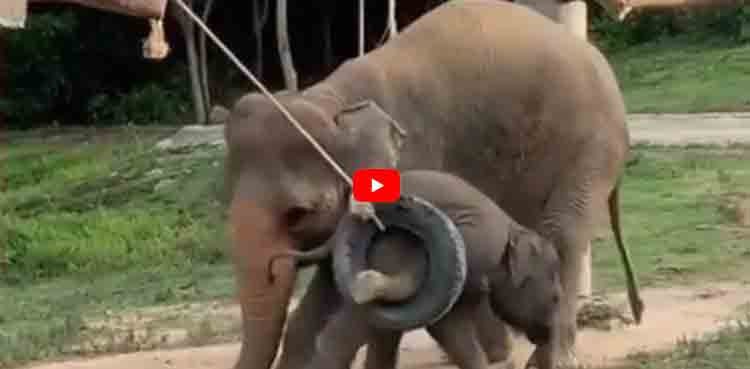 سوشل میڈیا پر وائرل ہونے والی ویڈیو میں دیکھا جاسکتا ہے کہ ایک مادہ ہاتھی ٹائر والے جھولے میں پھنسے اپنے بچے کو نکال رہی ہے۔