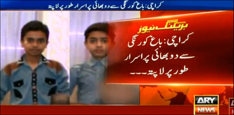 تفصیلات کے مطابق گزشتہ روز کورنگی انڈسٹریل ایریا کے علاقے باغ کورنگی سے دو بچے اغواء ہوگئے تھے،14سالہ شایان اور16سالہ حارث کے لواحقین نے تھانہ عوامی کالونی میں بچوں کی گمشدگی کی رپورٹ بھی درج کرادی تھی۔