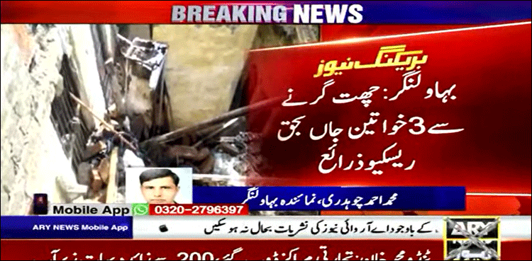 بہاولنگر: پنجاب کے شہر بہاولنگر میں ایک مکان کی چھت گرنے سے 3 خواتین جاں بحق ہو گئیں۔