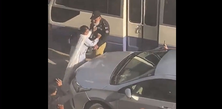 خاتون کے تشدد کا شکار ہونے والے پولیس افسر نے ایک بیان میں کہا ہے کہ خاتون نے بدتمیزی کرتے ہوئے کہا کہ تم ہمارے نوکر ہو جس پر میں نے کہا کہ جو قانون پر عمل کرتے ہیں ہم ان کے نوکر ہیں۔