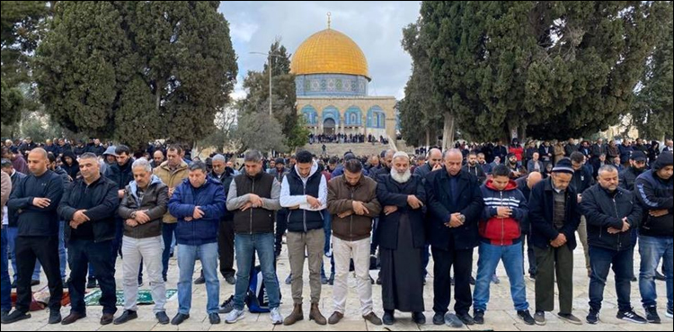 اسرائیلی فوج اور پولیس کی طرف سے پابندیوں کے باوجود 30 ہزار فلسطینیوں نے مسجد اقصیٰ میں گزشتہ روز نماز جمعہ ادا کی، فلسطینی نمازیوں کی مسجد اقصیٰ آمد کا سلسلہ علی الصباح ہی شروع ہوگیا تھا۔