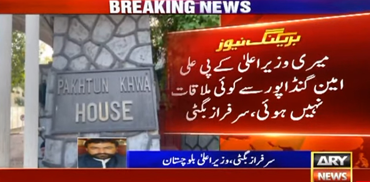 اے آر وائی نیوز سے گفتگو کرتے ہوئے سرفراز بگٹی نے واضح کیا کہ میری علی امین گنڈاپور سے کوئی ملاقات نہیں ہوئی ہے اور اس ملاقات سے متعلق آنے والی خبروں میں کوئی صداقت نہیں۔