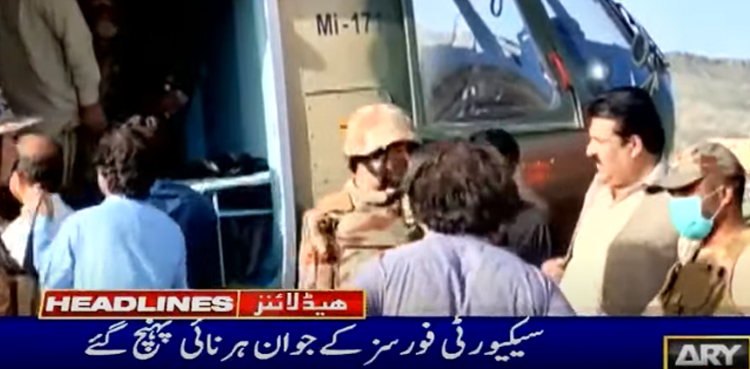 آرمی ڈاکٹرز اور طبی عملے نے متاثرین کو طبی سہولیات کی فراہمی بھی شروع کردی جب کہ نو شدید زخمی افراد کو آرمی ہیلی کاپٹر کے ذریعے کوئٹہ منتقل کردیا گیا ہے۔