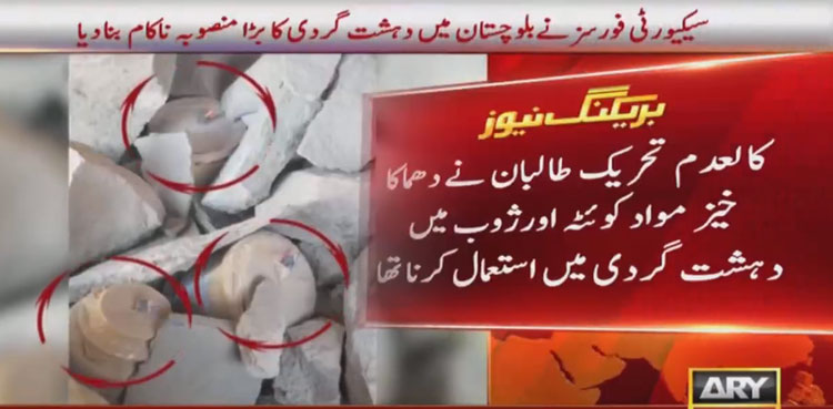 کوئٹہ: سیکیورٹی فورسز نے بلوچستان میں دہشت گردی کا بڑا منصوبہ ناکام بنا دیا، فورسز کی کارروائی کے دوران بڑی مقدار میں دھماکا خیز مواد برآمد ہوا ہے۔