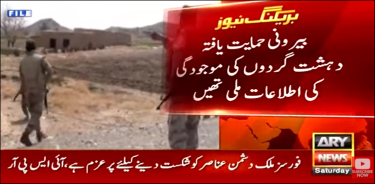 پاک فوج کے شعبۂ تعلقاتِ عامہ (آئی ایس پی آر) کی جانب سے جاری اعلامیے کے مطابق سیکیورٹی فورسز نے بلوچستان کے علاقے ہوشاب میں بیرونی حمایت یافتہ دہشت گردوں کی موجودگی کی اطلاع پر کارروائی کی۔سیکیورٹی فورسز کے آپریشن کے دوران دہشت گردوں کو بھاری نقصان کا سامنا بھی کرنا پڑا۔