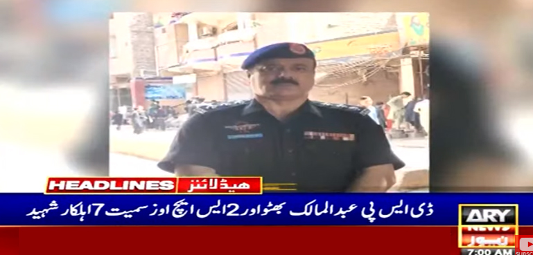 اے آر وائی نیوز کے مطابق ہفتہ اور اتوار کی درمیانی شب گھوٹکی میں رونتی کے کچے کے علاقے میں ڈاکوؤں نے پولیس کیمپ پر حملہ کردیا جس کے نتیججے میں ڈی ایس پی عبدالمالک بھٹو، دو ایس ایچ اوز سمیت 7 اہلکار شہید ہوگئے ہیں۔