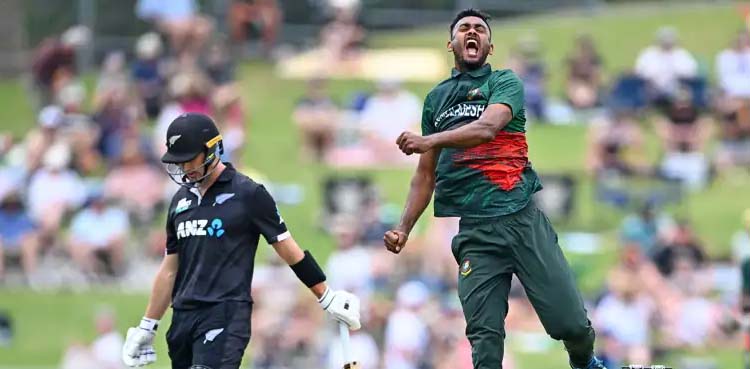 تیسرے ون ڈے میچ میں بنگلہ دیشی بولرز نے کیوی بیٹنگ لائن ٹہس نہس کردی صرف 98 رنز پر پوری ٹیم ڈھیر ہوگئی، سات کھلاڑی ڈبل فگر میں بھی داخل نہ ہوسکے۔