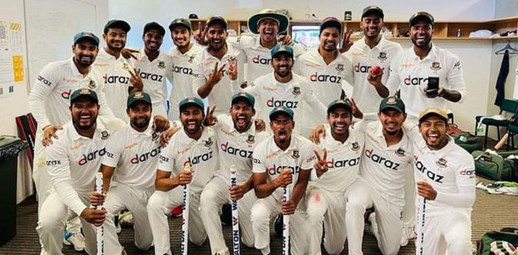 تفصیلات کے مطابق ماونٹ منگنوئی میں کھیلے گئے پہلے ٹیسٹ میچ میں بنگال ٹائیگرز نے میزبان ٹیم کے خلاف 8 وکٹ سے کامیابی حاصل کی،اسی تاریخی فتح کے ساتھ بنگال ٹائیگرز نیوزی لینڈ میں پہلی مرتبہ اور ہوم گراؤنڈ سے باہر چھٹی مرتبہ کوئی ٹیسٹ جیتنے میں کامیاب ہوا ہے۔
