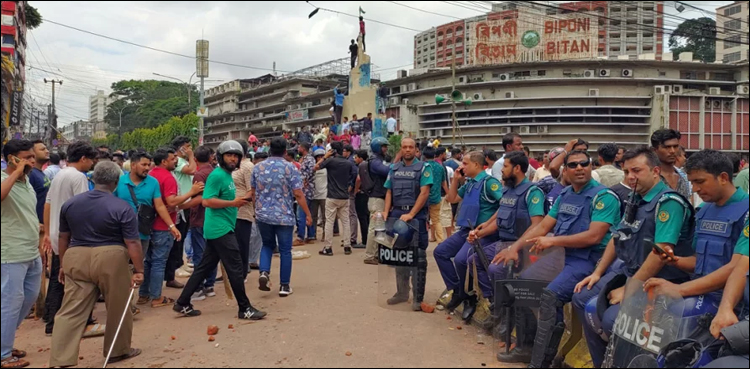 گزشتہ دنوں حکومت کے خاتمے کا مطالبہ کرنے والے مظاہرین اور عوامی لیگ کے رہنماؤں اور کارکنوں کے ساتھ جھڑپوں میں کئی پولیس اہلکار ہلاک بھی ہوئے۔ ڈھاکا سمیت ملک کے مختلف اضلاع میں سینکڑوں پولیس اسٹیشنوں اور پولیس اداروں میں توڑ پھوڑ اور آتش زنی کے واقعات دیکھنے میں آئے۔ پیر کو حکومت کے خاتمے کے بعد پولیس ہیڈ کوارٹر کو بھی آگ لگا دی گئی۔