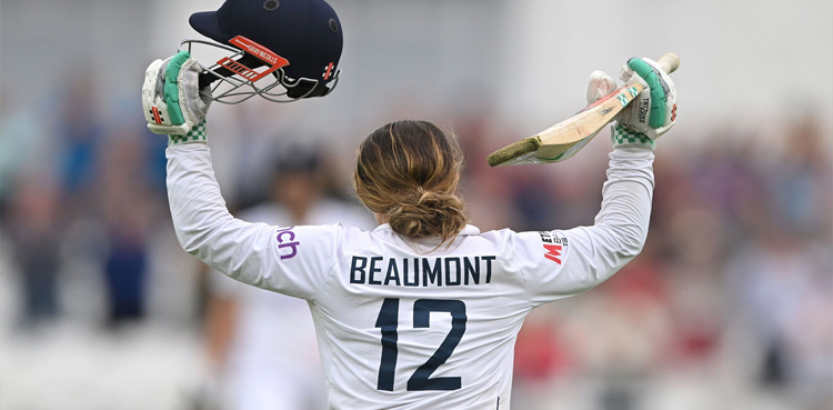 ناٹنگھم میں آسٹریلیا کے خلاف واحد ٹیسٹ میچ کی پہلی اننگز میں ٹیمی بیوماؤنٹ نے ڈبل سنچری اسکور کی۔ انہوں نے 331 گیندوں پر 27 چوکوں کی مدد سے 208 رنز کی اننگز کھیلی۔ بیومونٹ ٹیسٹ کرکٹ میں ڈبل سنچری بنانے والی انگلینڈ کی پہلی خاتون کرکٹر بن گئی ہیں۔