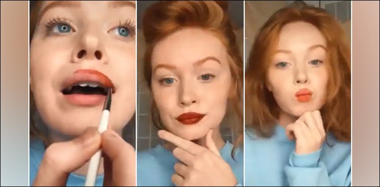 امریکی ریاست شکاگو کی ماڈل برائنا کرسچنسن نے سماجی رابطے کی ویب سائٹ ٹویٹر پر ٹک ٹاک ویڈیو شیئر کی جس میں وہ مہندی کو لپ اسٹک کے طور پر استعمال کرتی دکھائی دے رہی ہیں۔