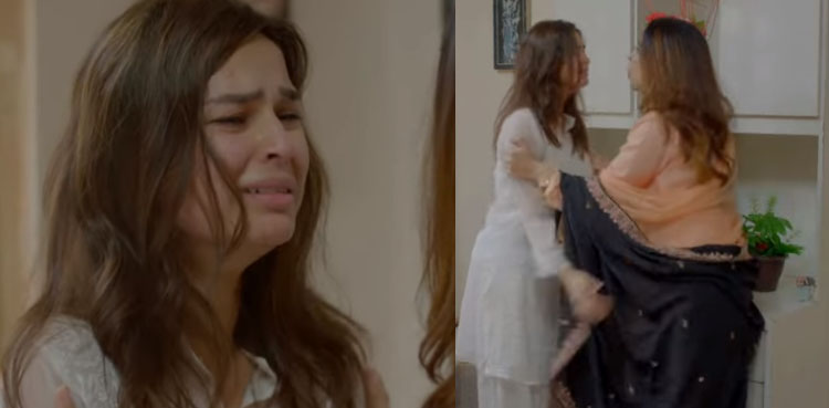 فضا عائزہ سے کہتی ہیں کہ ’تمہیں اپنی غلطی کا احساس ہے میرے لیے یہی کافی ہے تم فکر نہیں کرو میں ابو سے بات کروں گی اور انہیں منانے کی کوشش کروں گی۔‘