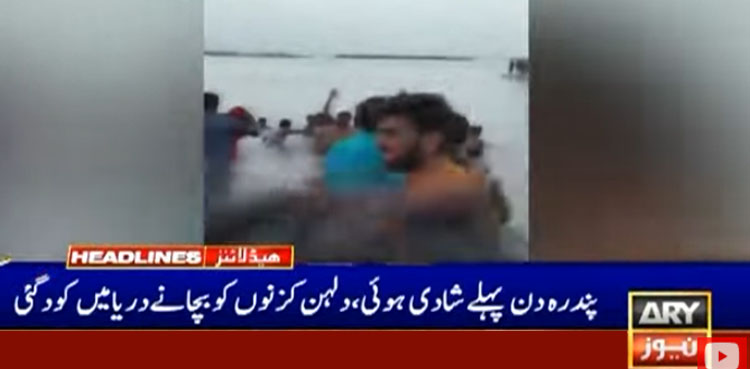 اے آر وائی نیوز کے مطابق بکھر کے قریب دلہن کزن کو بچانے کے لیے دریائے میں کود گئی جس کے نتیجے میں اس کی جان چلی گئی۔