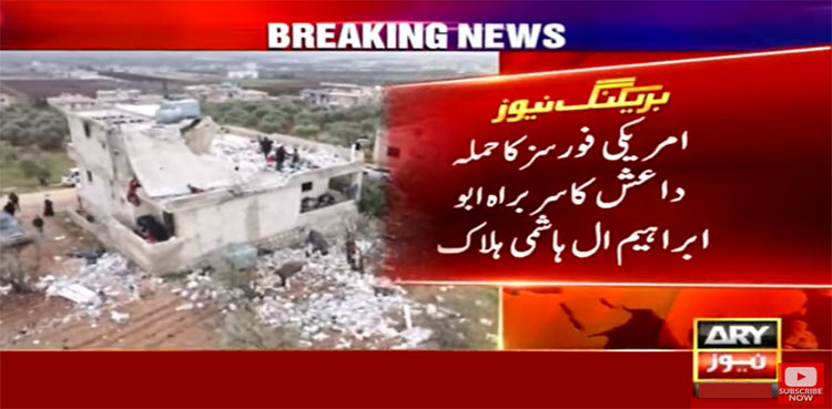 غیرملکی خبررساں ادارے کی رپورٹ کے مطابق امریکی فورسزنے شام کے صوبے ادلب میں خصوصی آپریشن کیا جس کے نتیجے میں داعش سربراہ ابو ابراہیم الہاشمی القریشی ہلاک ہوگیا، کارروائی کے دوران داعش سربراہ کے ساتھ 13 افراد بھی مارے گئے۔