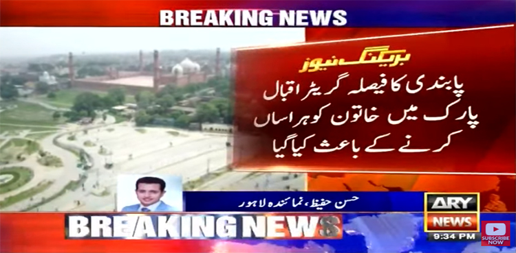 اتھارٹی نے پابندی کافیصلہ گریٹر اقبال پارک میں خاتون کو ہراساں کرنےکےباعث کیا ہے۔ ساتھ ہی ‏سیکورٹی مزید سخت اور انتظامی امور کو بہتر بنایا جارہا ہے۔
