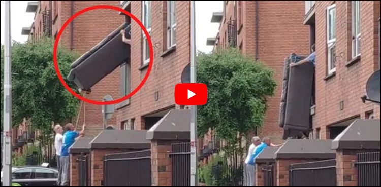 صوفہ کھڑکی سے نیچے اتارنے کی مضحکہ خیز ویڈیو وائرل