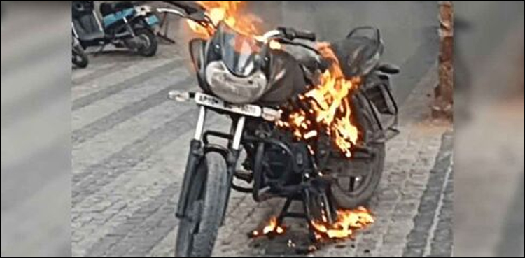 تاہم ٹریفک پولیس کے اہل کاروں نے فوری طور پر حرکت میں آ کر قریبی دکان سے پانی لا کر آگ پر قابو پا لیا۔