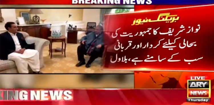اے آر وائی نیوز کے مطابق چیئرمین پی پی بلاول بھٹو زرداری نے مسلم لیگ (ن) کے قائد نواز شریف کو پاکستان تحریک انصاف کی حکومت کے خاتمے کی مبارکباد دی۔