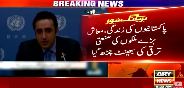 اے آر وائی نیوز کے مطابق بلاول بھٹو نے نیویارک میں پریس کانفرنس کرتے ہوئے کہا کہ پاکستان کو سیلاب کی شکل میں تاریخ کی بڑی قدرتی آفت کا سامنا ہے، ہمیں جن مسائل کا سامنا ہے ان کا سبب ہم نہیں ہیں، ہم کسی سے کوئی خیرات نہیں مانگ رہے، ہمیں اسلحہ اور امداد نہیں صرف اپنے لوگوں کے لیے انصاف چاہیے، ہم موسمیاتی تبدیلی سے شدید متاثر دس ملکوں کے لئے انصاف چاہتے ہیں۔
