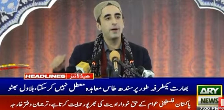 چیئرمین پیپلزپارٹی نے کہا کہ سندھ طاس معاہدے کی معطلی سندھو دریا پر تاریخ کاسب سے بڑا حملہ ہے، بھارت یکطرفہ طور پر سندھ طاس معاہدہ معطل نہیں کرسکتا، معطلی ہماری سرزمین پر حملہ ہے، کوئی سوچ بھی نہیں سکتا تھا مودی سندھو کا پانی روکنے اور ڈیم بنانے کی دھمکی دے گا۔