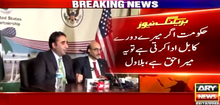 اے آر وائی نیوز کے مطابق وزیر خارجہ بلاول بھٹو زرداری جو کئی روز سے امریکا کے دورے پر ہیں نے گزشتہ روز واشنگٹن میں پاکستانی سفارتخانے میں پریس کانفرنس کے دوران کہا کہ میں پہلا وزیر خارجہ ہوں جو غیر ملکی دوروں پر ہوٹل کا بل خود ادا کرتا ہوں لیکن اگر حکومت یہ بل ادا کرتی ہے تو یہ میرا حق ہے کیونکہ میں وزیر خارجہ ہوں وزیر دفاع نہیں۔