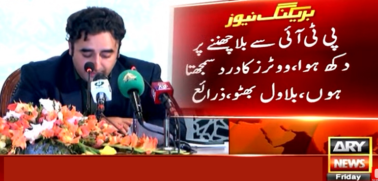 اے آر وائی نیوز کے مطابق پی پی پی چیئرمین بلاول بھٹو کی پارٹی کے سینیئر رہنماؤں سے ملاقات ہوئی ہے۔ ذرائع نے اس ملاقات کا اندرونی احوال بتاتے ہوئے کہا ہے کہ پاکستان تحریک انصاف سے بلے کا انتخابی نشان چھننے پر دکھ ہوا، ووٹرز کا درد سمجھتا ہوں۔