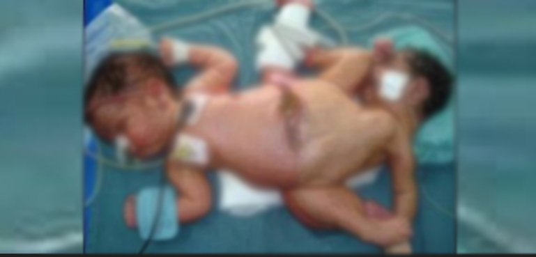 دھڑ جڑے جڑواں بچوں کی پیدائش ہوئی ہے جن کی تین ٹانگیں ہیں اور یہ دنیا میں انتہائی نایاب قسم کے پیدائشی نقص کا کیس ہے۔