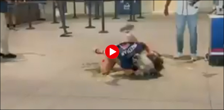 ایک مداح کو ’اسے چھوڑ دو‘ کہتے سنا جاسکتا ہے لیکن وہ بھی ان کے جھگڑے کو ختم کروانے میں ناکام رہا۔