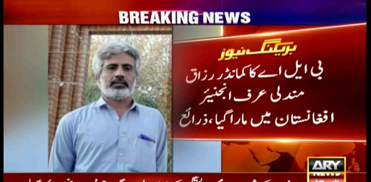 اسلام آباد : بلوچ لبریشن آرمی ( بی ایل اے ) کا کمانڈر رزاق مندلی عرف انجنئیر افغانستان میں مارا گیا، ہلاک کمانڈر اسلحہ بارود افغانستان سے پاکستان منتقل کرتا تھا۔